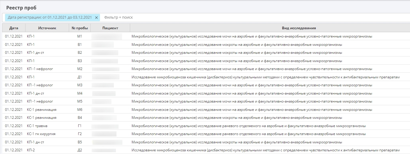 Единый рабочий лист для всех проб, удобные фильтры ускоряют поиск нужного анализа