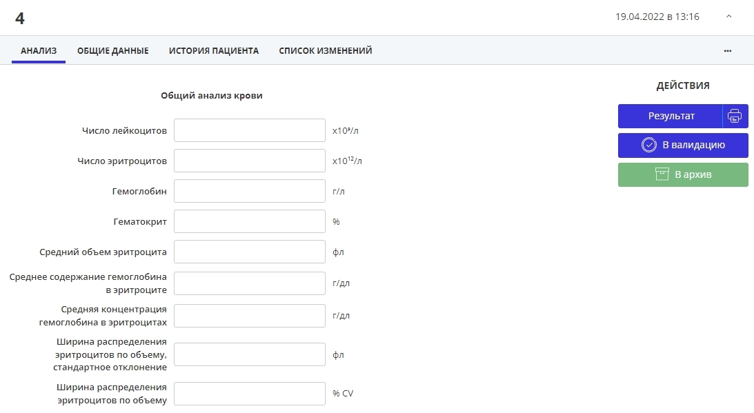 Выгрузка данных исследования из анализатора в ЛИС, автозаполнение всех показателей.