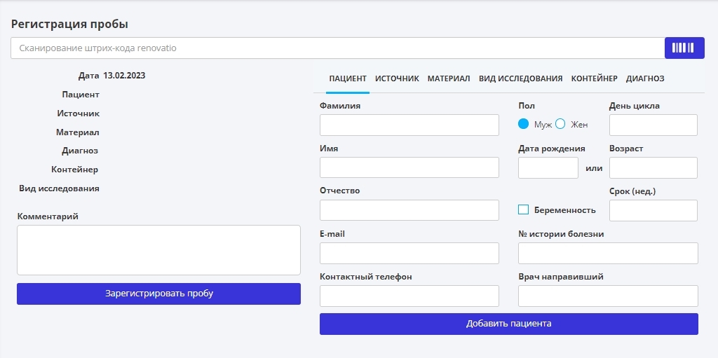 Сканируйте штрихкод и данные о пробе заполняются автоматически из МИС